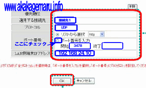 注意事項、5番目からプロトコルはUDPを指定して下さい。