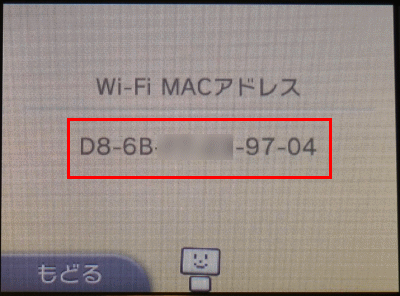 3DSのMACアドレスサンプル