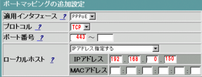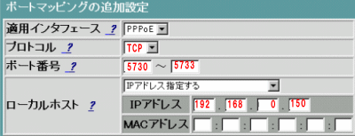 WEB Caster 600mnの設定画面をパソコンまたはPS3から開き、ポートマッピング設定項目を表示ください。表示方法はWEB Caster 600mn ポート開放説明をご覧ください。またPS3から設定画面する場合はこちらを参照ください。