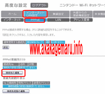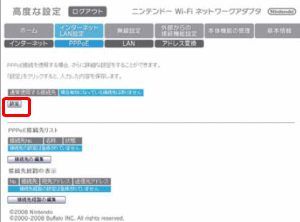 高度な設定が開いたらインターネットLAN設定からPPPoEを開き、接続先の編集ボタンをクリックしてください