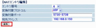 変換アドレス:192.168.0.150(以降宛先アドレスは同じになります。サンプル図をご参考に設定を完了してください。)
