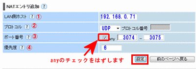 - LAN側ホスト192.168.0.71(クライアントを指定する項目です)