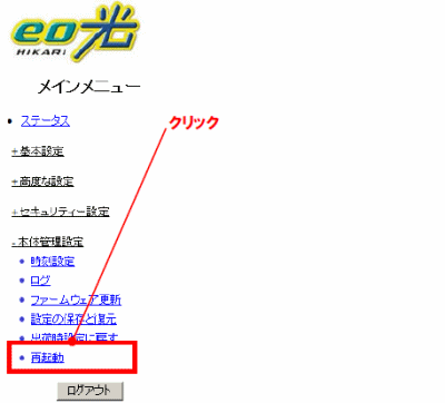 設定を確実にブロードバンドルータへ反映させるために、念のためブロードバンドルータを再起動させて下さい。