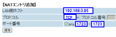 • ポート番号anyチェック外す:1723-1723