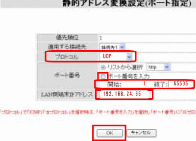 注意事項以下からはUDPプロトコルの設定になります。プロトコルの指定に注意下さい