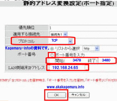 設定はCOD設定含めて全部で7つ作成頂く必要があります。優先順位は必ず1番から指定下さい。それから以前他のポート開放設定がある場合はなるべく削除してから設定して下さい。