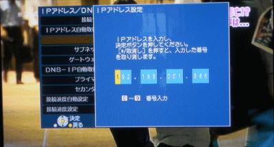 IPアドレス設定画面が出ますので、こちらの画面でディーガのIPアドレスを固定することができます。