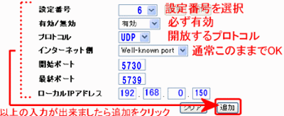 設定番号は5、プロトコルUDP、3658番を追加下さい。