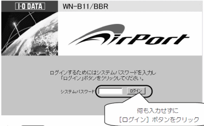ログイン画面出ましたら、システムパスワードは空欄で構わないのでそのままログインしてください。