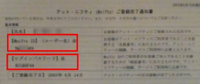 NiftyでのIDとパスワードも基本的には郵送の書類で確認します。