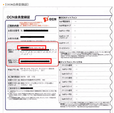 OCNのPPPoE接続時に必要なIDとパスワードです。