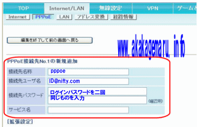 入力サンプル図(バッファローPPPoE設定)