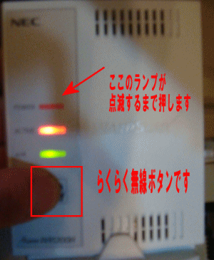 注意:らくらく無線設定は素早く二度本体のボタンを押す作業が必要になります。以下の説明ページを最後までよく読んでから設定作業をお願い致します。