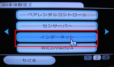 本体設定画面が出ましたら右矢印をタッチして2ページ目を表示し次の画面にあるインターネットをタッチしてください。