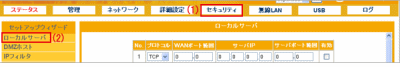 設定画面が開きましたら、メニューにあるセキュリティからローカルサーバをクリックしてください