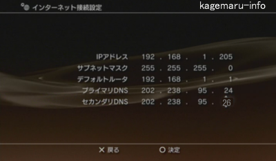 もし無線ルータへポート開放作業等が必要な場合はカスタム設定でプレイステーション3のIPアドレスを固定しておくと良いでしょう。