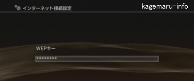 WEPキーを含む暗号化キーを入力します。コントローラ○ボタンで入力画面へと進みます。