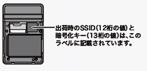 カバーを開けると、PWR-100のSSID番号(12桁)と、WEPキー13桁を確認することが出来ます。これを控えiphoneやiphodに設定することで簡単にワイファイ接続することが出来ます。