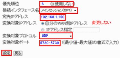 変換対象ポート:5730-5739(範囲指定)