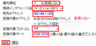 変換対象ポート:5730-5733(範囲指定)