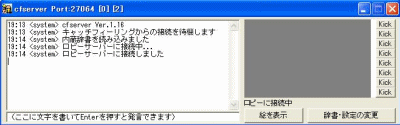 キャッチフィーリング本体をダウンロードし解凍したフォルダ内からcfserverをダブルクリックで起動します。