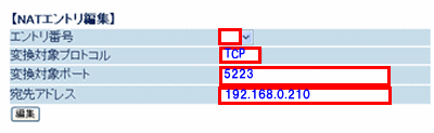 WD724GVの設定画面を開いてポートマッピング画面を表示します。詳しくはAterm WD724GV ポート開放説明を参照