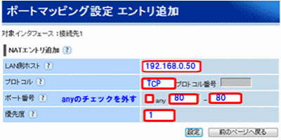 バッファロールータの場合も同様にTCPポート80番を追加