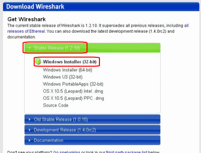 Wiresharkのダウンロード説明です。まず公式サイトからセットアップするパソコンのOS別にインストーラーをダウンロードします。