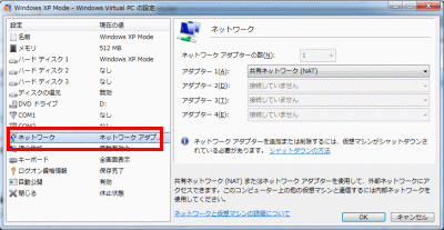 Windows XP MODE Virtual PC の設定 画面が開いたらネットワークをクリックして下さい。